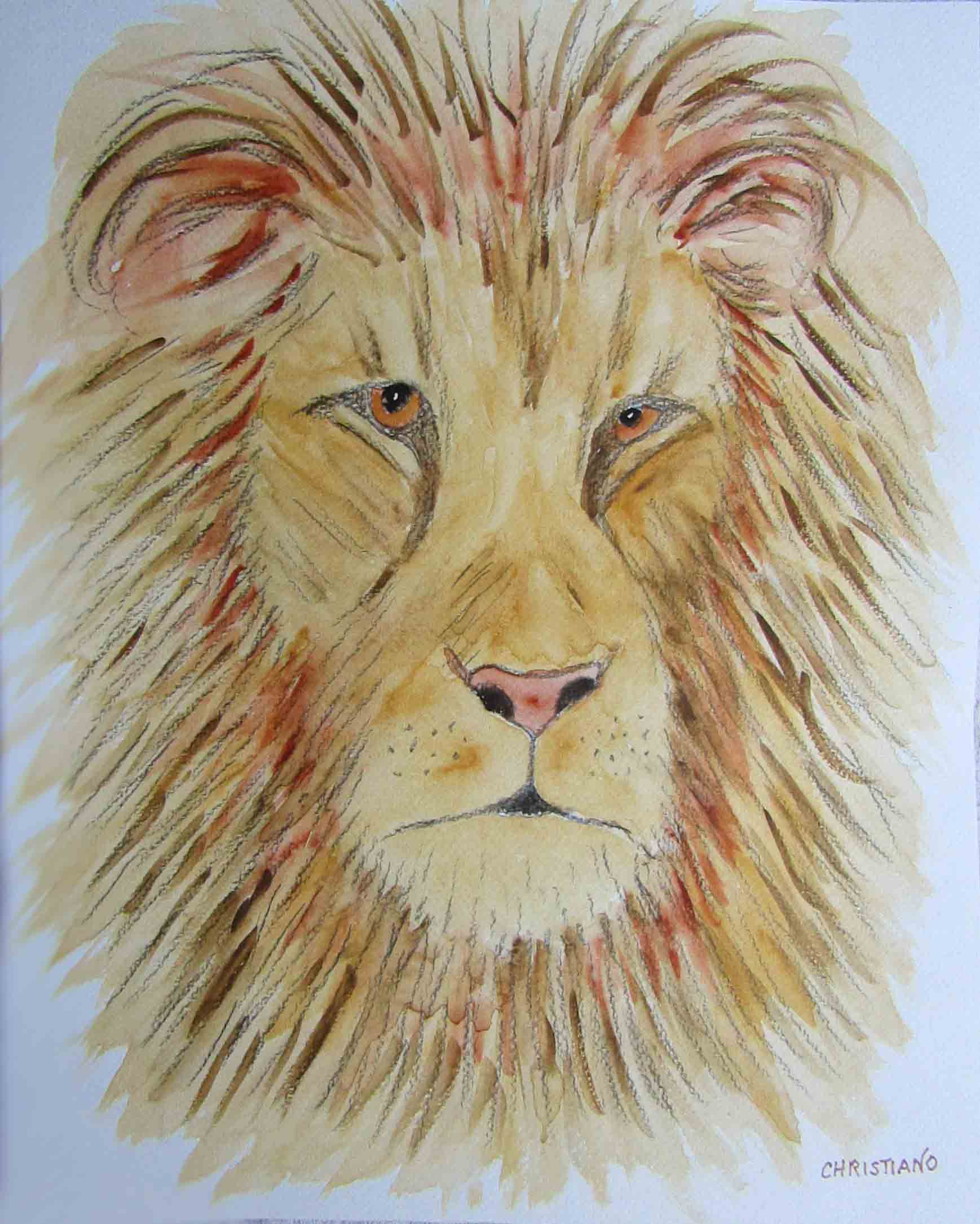This original watercolor 14″ x 11″ Expressionistic Lion will be presented in a 20″ x 16″ matted Frame.